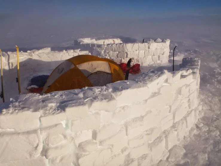 It is almost a guarantee that a Greenland crossing party encounters a Piteraq. Typically, an expedition will be in radio contact with a meteorologist. If a Piteraq forms, the group will get an 8-hour notice. With the advanced warning, the team will construct a snow wall to protect the tent from wind. Without an ice wall, the tent and the sleds will be blown away, jeopardizing the mission.